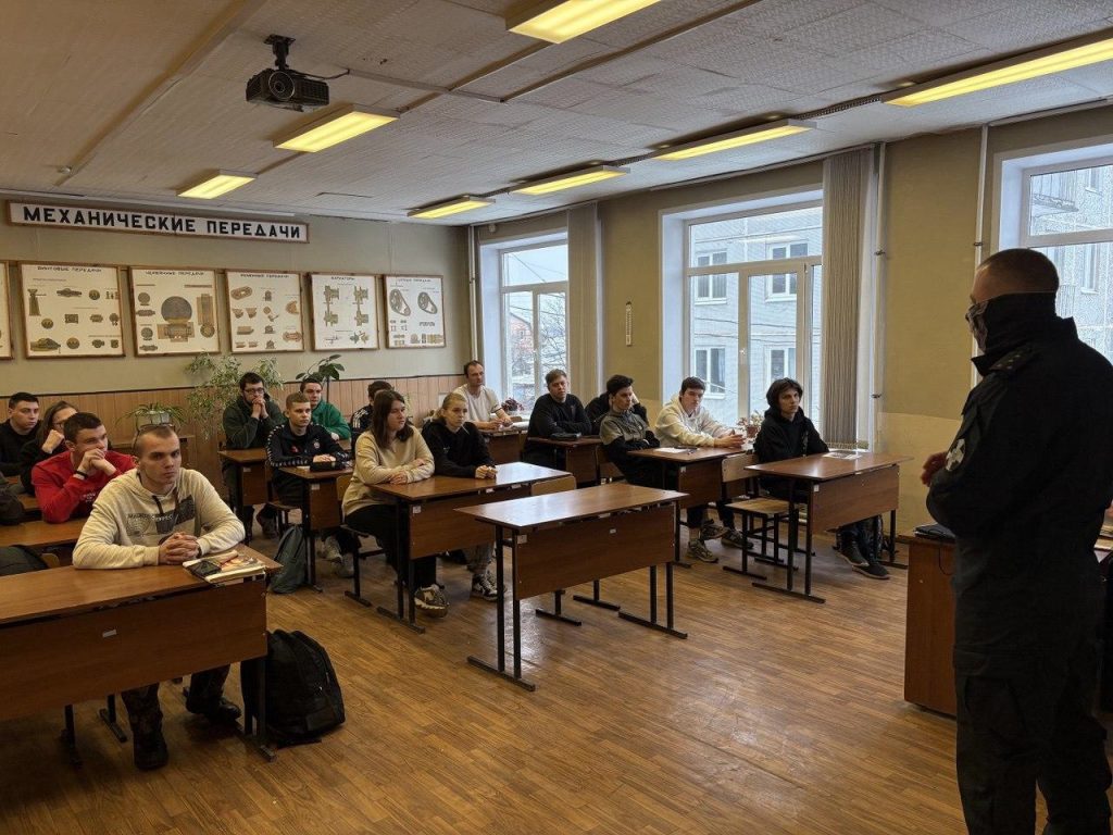 6 февраля 2025 года в ТГТК сотрудником ОМОН «Молот» управления Росгвардии по Тульской области была проведена агитационно-информационная беседа с обучающимися колледжа по вопросу поступления в военные образовательные организации высшего образования войск национальной гвардии РФ.
