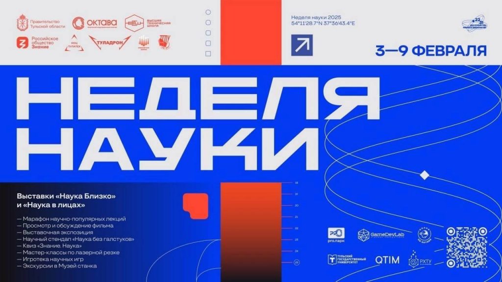 Мастер — класс «Новая волна71» от Регионального центра практической подготовки для реализации образовательных процессов по разработке и эксплуатации беспилотных авиационных систем на территории Тульской области участник выставки инновационных проектов с 3 по 9 февраля 2025 года Творческий индустриальный кластер «Октава» стал площадкой для проведения Недели науки в Тульской области. Мероприятие проходит в рамках десятилетия науки и технологий в России.В течение недели для посетителей организована увлекательная программа, включающая марафон научных лекций, научный стендап, фотовыставки, тематические мастер-классы и игротеку.