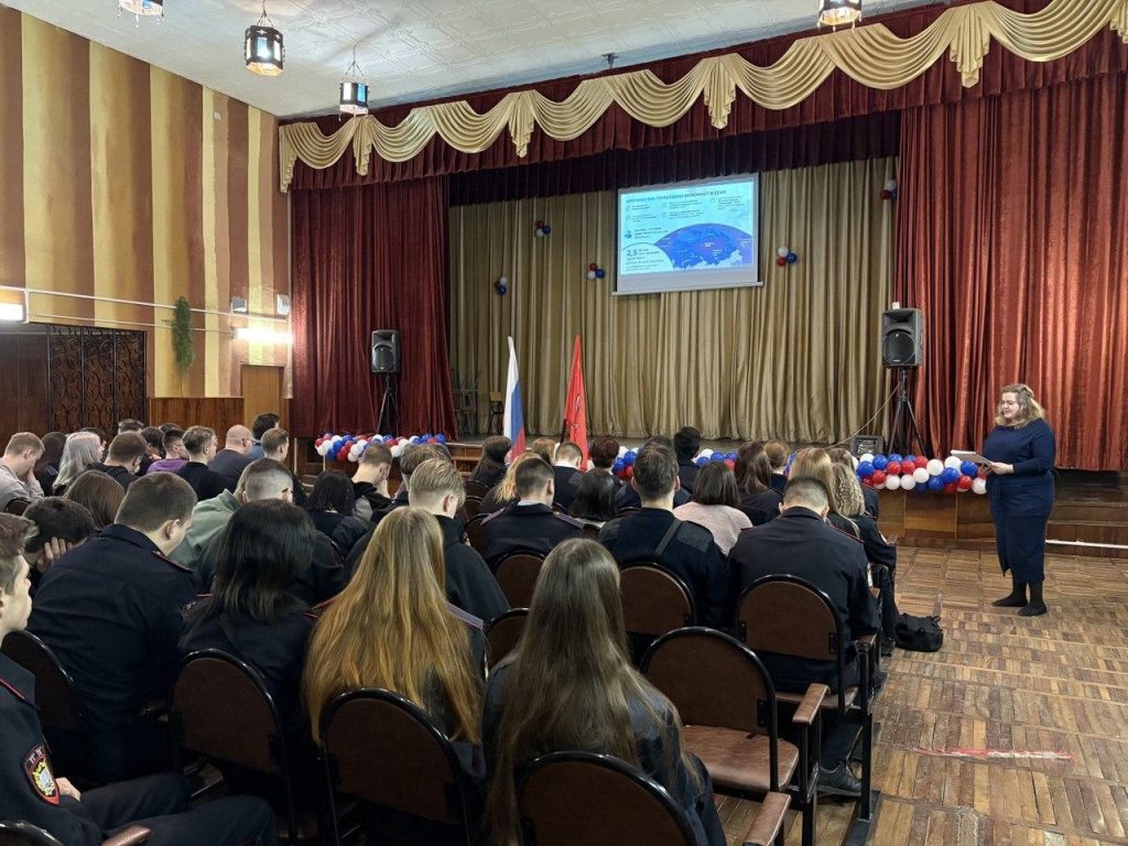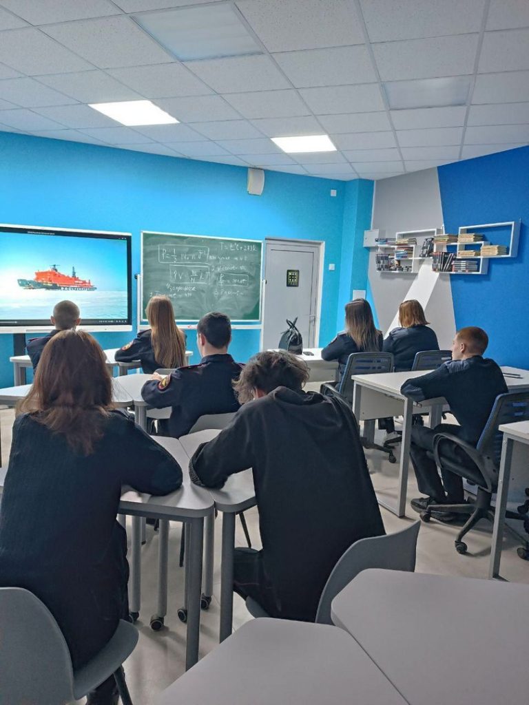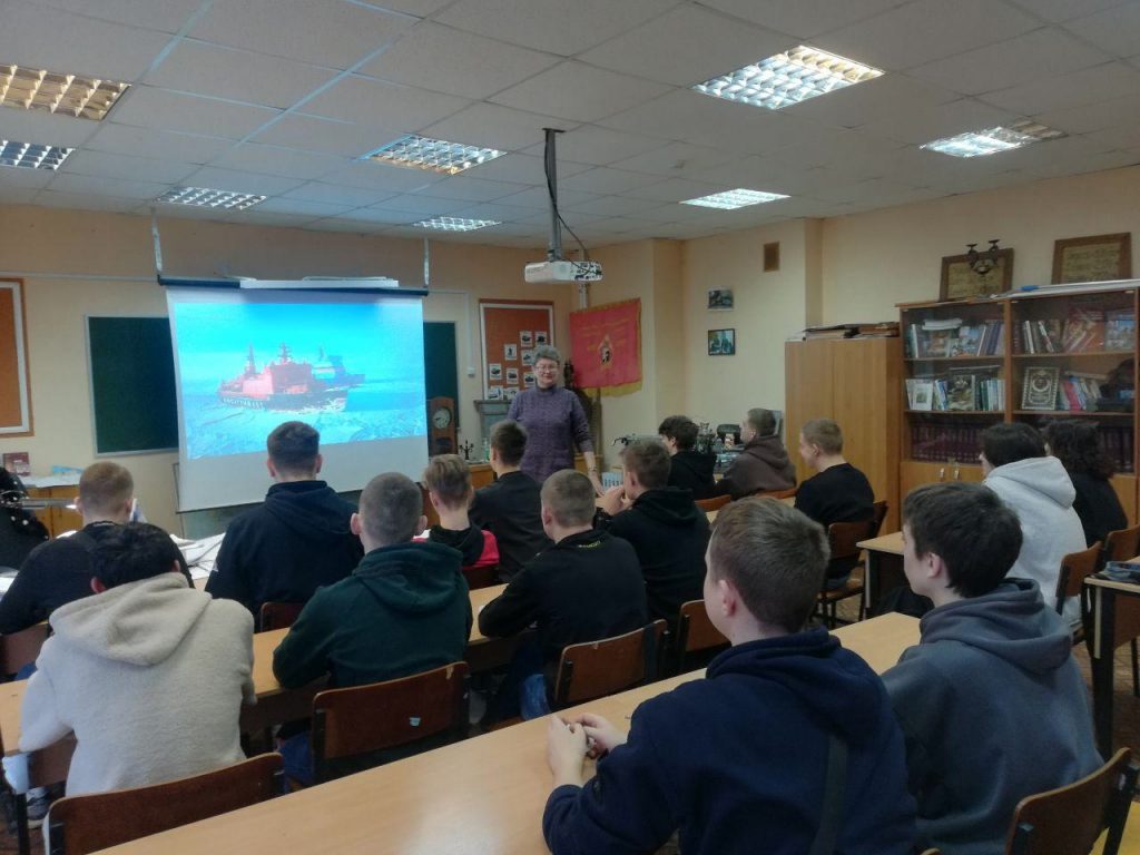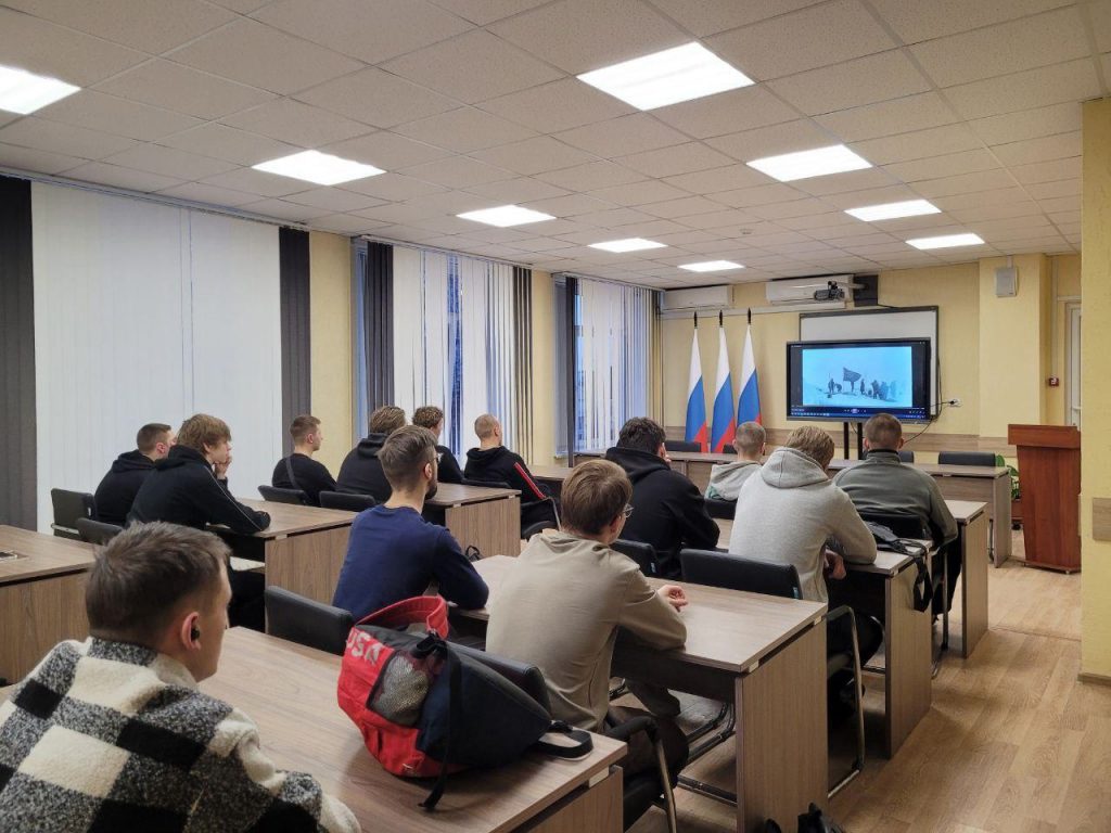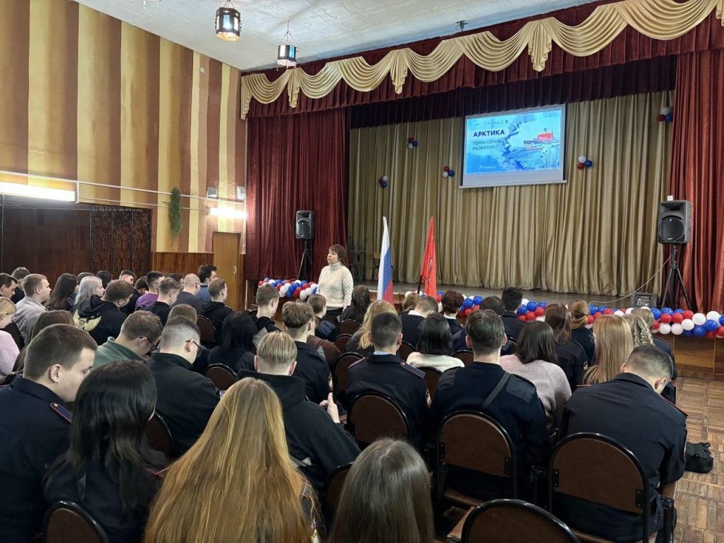 На занятии педагоги говорили со студентами об истории исследования и освоения Арктики как особой странице в истории достижений России, трудовых подвигах людей, научных открытиях.