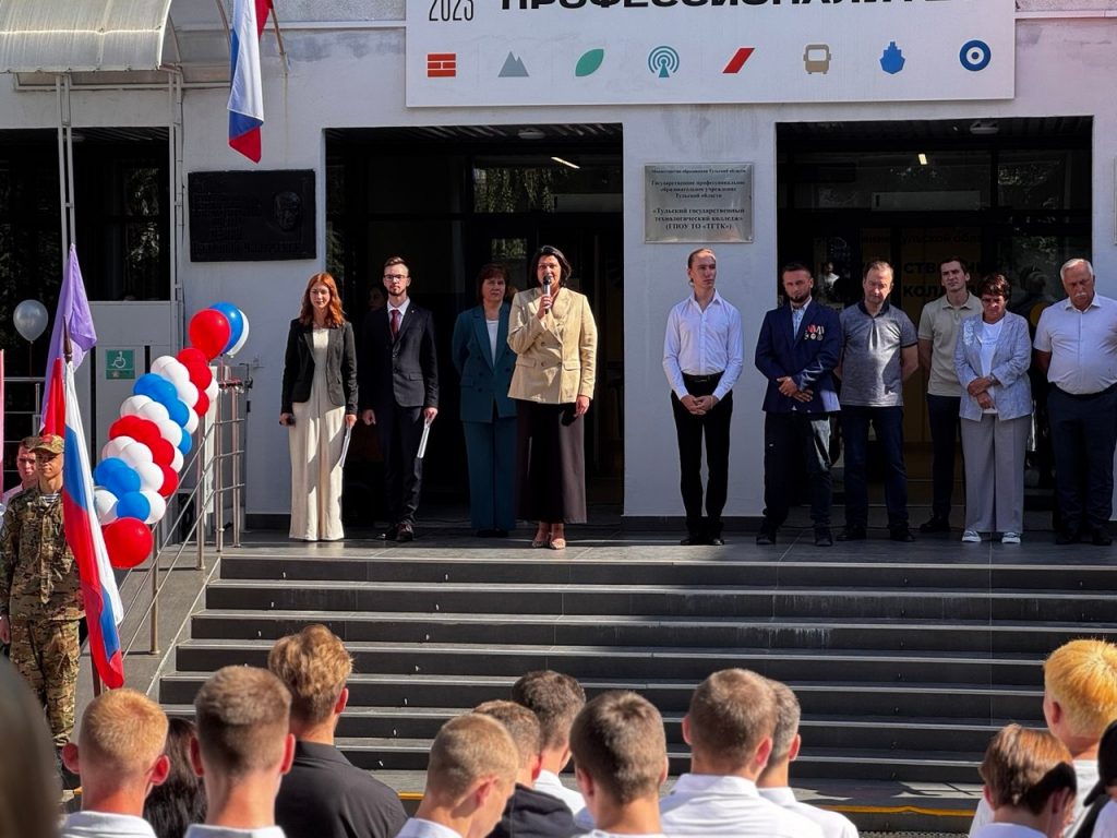 С началом нового 2025-2026 учебного года собравшихся поздравила и произнесла напутственную речь директор Тульского государственного технологического колледжа Оксана Викторовна Захарова.