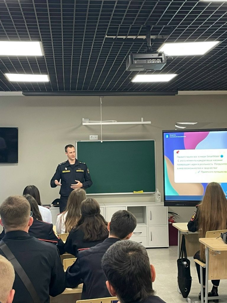 Перед студентами выступил старший лейтенант внутренней службы Бондарь И.С., который поделился с присутствующими о конкурентных преимуществах службы в Управлении.
