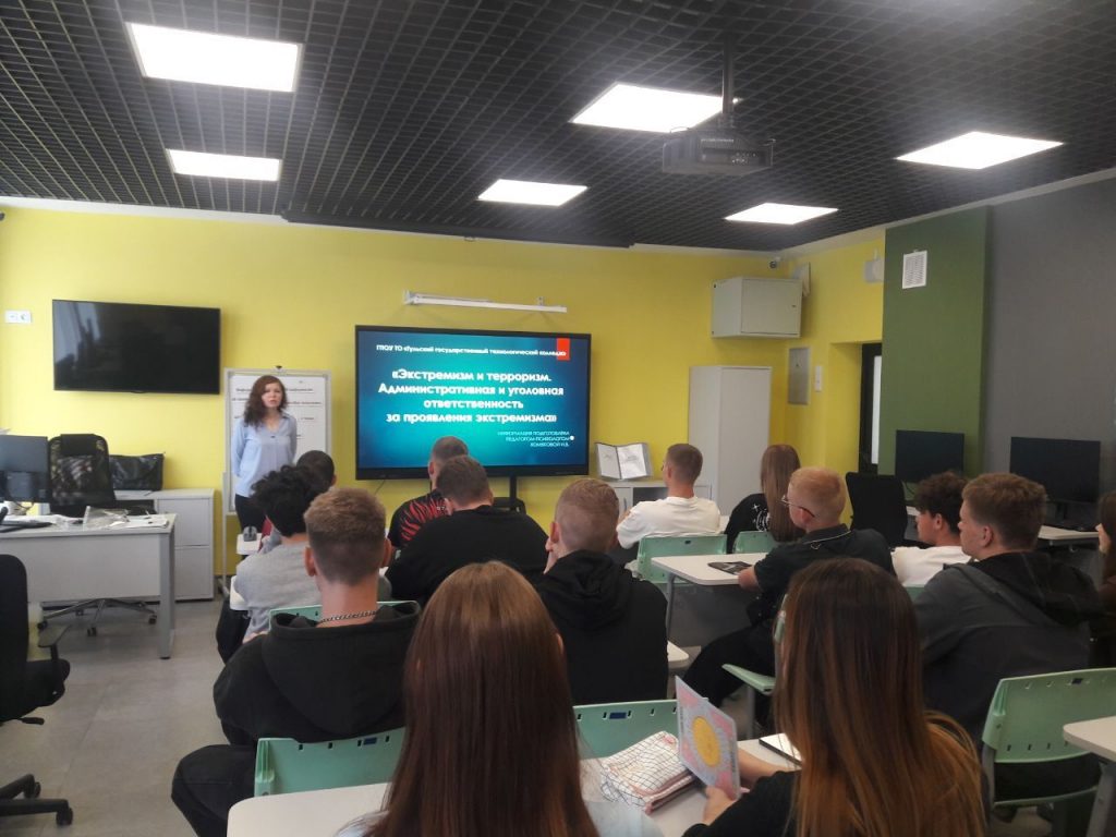 03 сентября 2025 года педагог-психолог для студентов 1 курса групп 251 и БАС-51, а также для выпускников, ребят группы ОИБ-21, провела занятия «Административная и уголовная ответственность за проявления экстремизма», в ходе которых ребята вспомнили, что такое экстремизм, возраст и строгость административного и уголовного наказания за совершение правонарушений и преступлений данного характера.