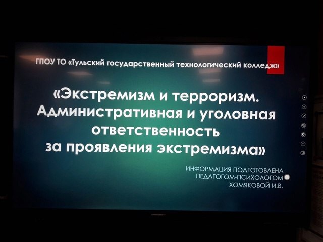 Новый учебный год в ГПОУ ТО «Тульский государственный технологический колледж» стал продолжением профилактической работы, в том числе в сфере профилактики экстремизма и терроризма в молодежной среде.