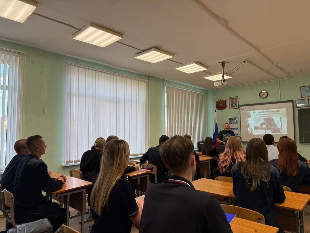 15 сентября 2025 года преподаватель колледжа Хорев В.В. провел среди студентов 3 курса специальности «Правоохранительная деятельность» цикл внеурочных мероприятий в рамках проекта «Без срока давности», напомнив обучающимся о тех страшных событиях и зверствах фашистов в лагерях смерти Освенцим (Аушвиц), Бухенвальд, Собибор и других. Были показаны фрагменты фильмов, свидетельствующих о тех событиях, проведена викторина «Нельзя забыть!». В завершение мероприятия все присутствующие почтили память солдат, погибших в годы войны, а также мирного населения Минутой молчания.