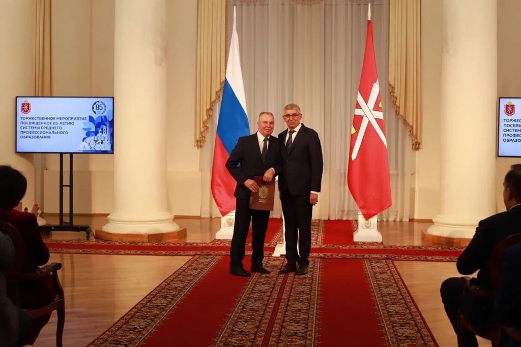 В день празднования 85-летия системы среднего профессионального образования, губернатор Тульской области Дмитрий Вячеславович Миляев в Доме Дворянского собрания вручил памятный подарок заведующему учебно-производственной мастерской Борисову Анатолию Петровичу.