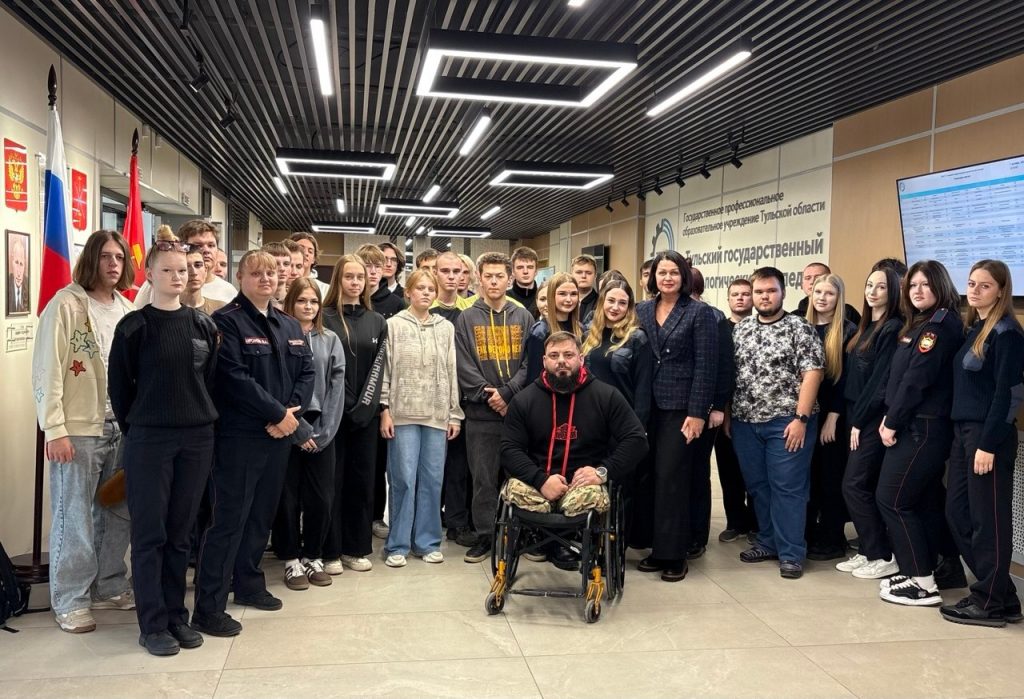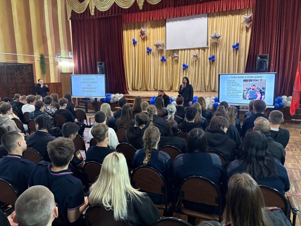 В рамках мероприятий, посвященных году Защитника Отечества в нашем колледже прошла значимая встреча с ветераном специальной военной операции Евгением Ивановым.