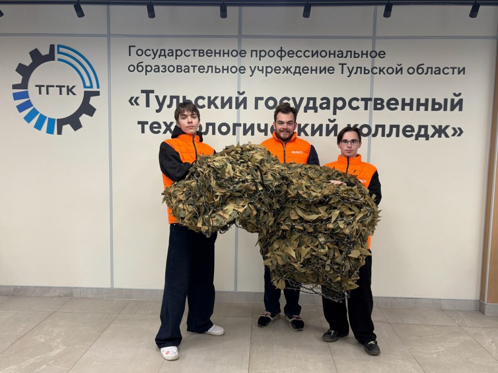 Волонтеры Центра помощи семьям военнослужащих и мобилизованных граждан, созданного на базе ГПОУ ТО «ТГТК», передали 2 маскировочные сети размером 3м на 6м в Войсковую часть 41495-3.
