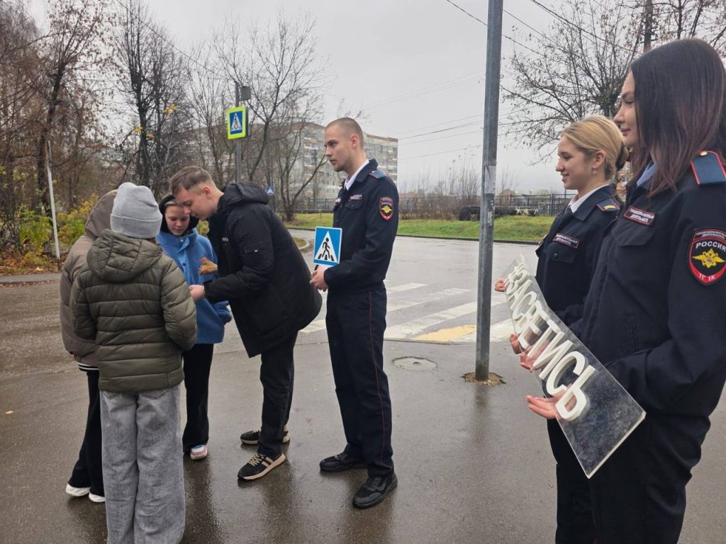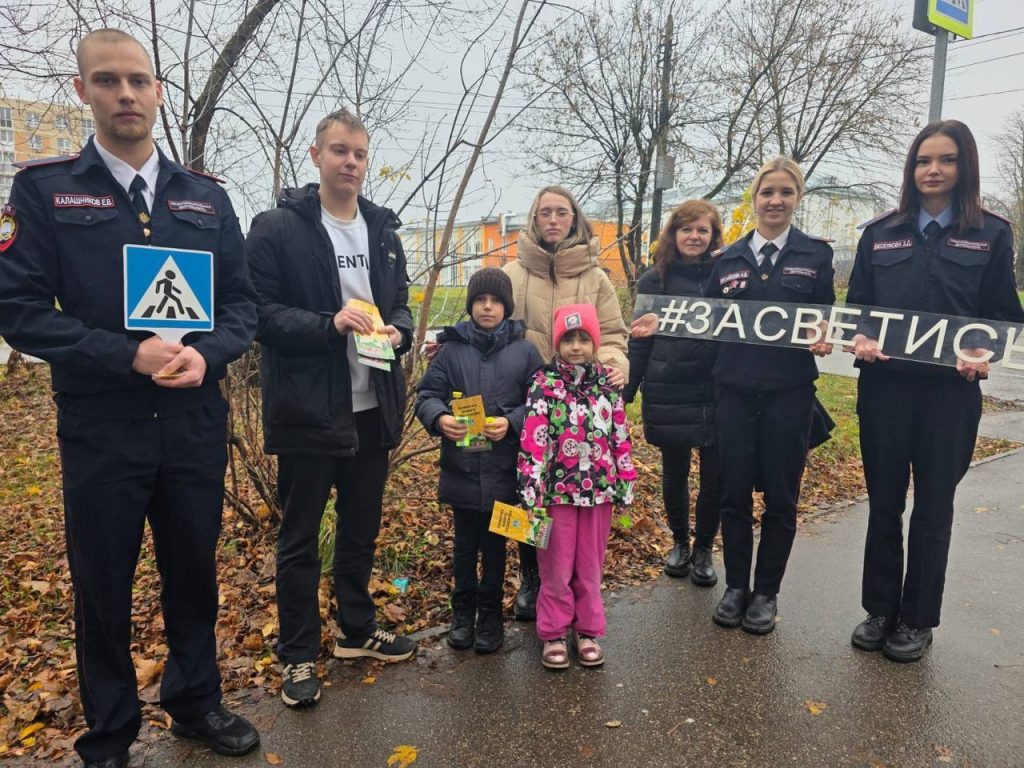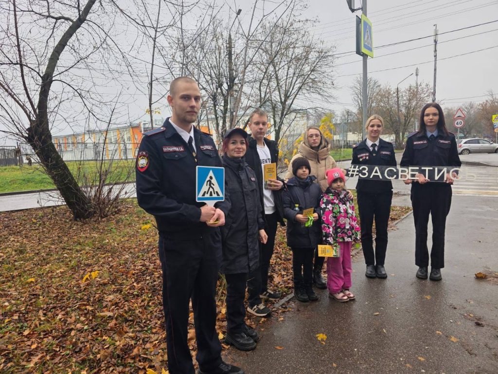 31 октября 2025 года участники волонтерского отряда » Территория энергии, здоровья и добра» ГПОУ ТО » Тульский государственный технологический колледж» под руководством наставника, совместно с сотрудниками ГИБДД города Тулы приняли участие в акции » Засветись!», посвященной Дню пешехода.