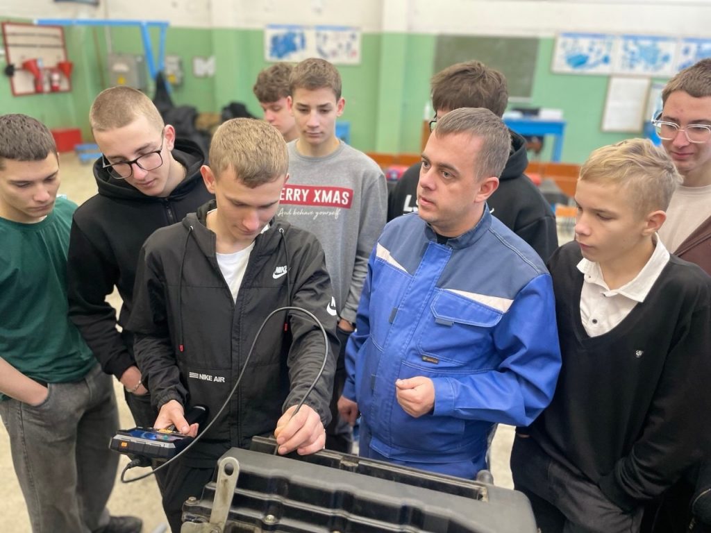 Студенты приняли участие в мастер-классе «Пит-стоп»: своими руками заменяли колесо и устраняли проколы шин. А на диагностике они буквально заглянули внутрь двигателя, используя современное оборудование, такое как видеоэндоскоп. Ребята установили поршневые кольца, применив специальный инструмент.