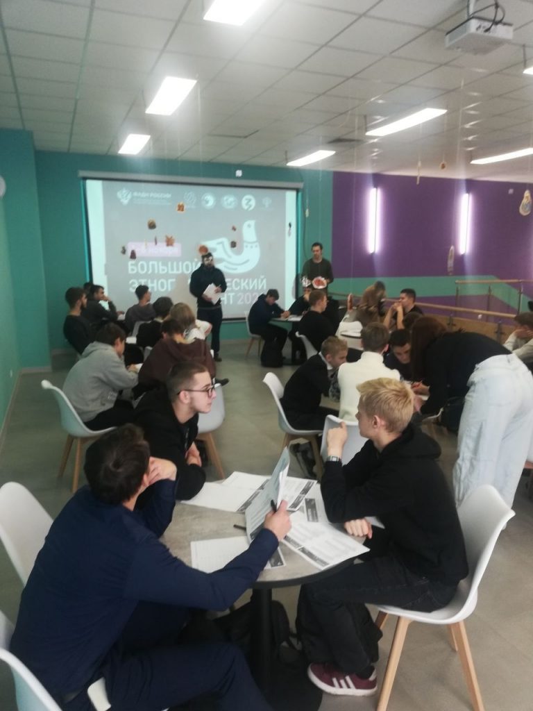 05 ноября студенты группы ТО-52 и преподаватель Синюкова С.А. приняли участие во Всероссийской просветительской акции «Большой этнографический диктант» на площадке МБУ «Молодежного многопрофильного центра «Родина».