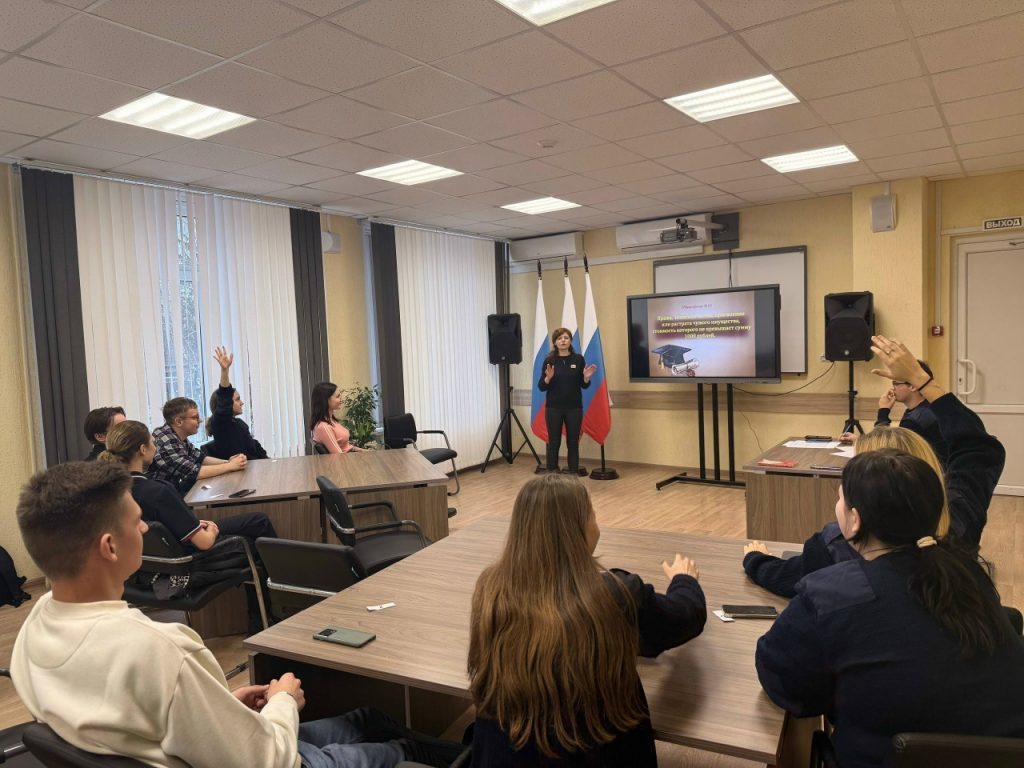10 ноября 2025 года рабочая встреча волонтеров прошла в нетрадиционном формате. Активисты волонтерского отряда «Территория энергии, здоровья и добра» нашего колледжа развивали и отрабатывали навыки ораторского искусства, командной работы, умения слушать, слышать и говорить путем участия в интеллект-баттле «Подросток и закон», который в течении следующих двух недель им предстоит проводить для старшеклассников Тулы и Тульской области. Баттл состоял из 4 раундов, в ходе которых ребята вспоминали административную и уголовную ответственность за разные виды правонарушений и преступлений. Данное мероприятие было организовано и проведено наставником волонтеров Хомяковой И.В.