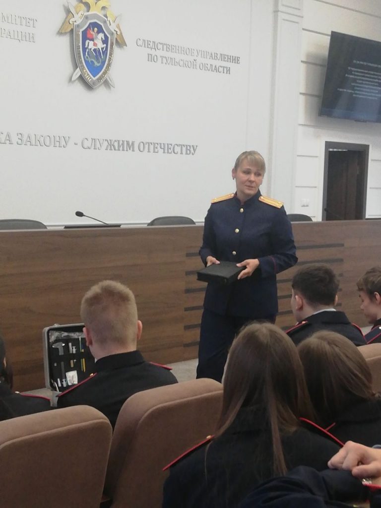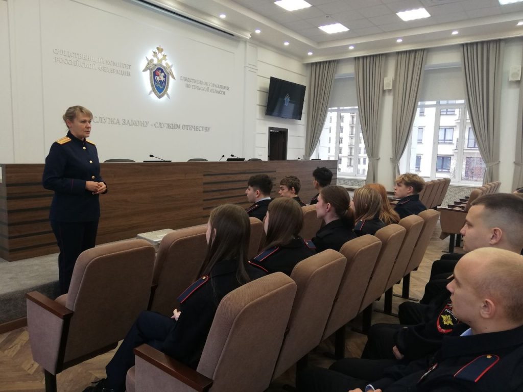 13 ноября сотрудники следственного управления СК РФ по Тульской области провели профориентационное мероприятие со студентами 2 курса экономико-правового отделения, обучающимися по специальности 40.02.02 Правоохранительная деятельность, группы ПД-42.