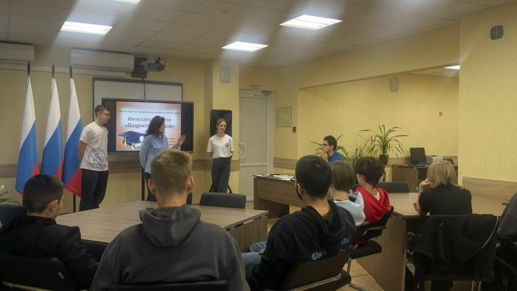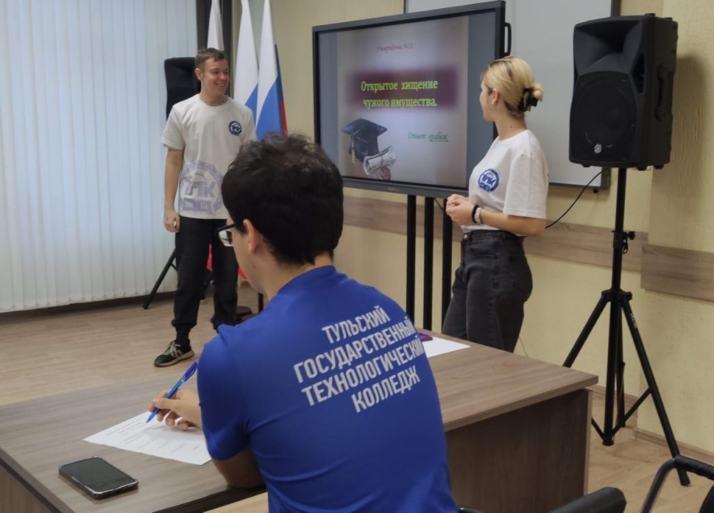 13 ноября 2025 года в рамках проведения второго этапа профилактической акции » Чистое поколение» активисты волонтерского отряда «Территория энергии, здоровья и добра» студенты ГПОУ ТО » Тульский государственный технологический колледж» под руководством наставника Хомяковой И.В. провели интеллект-баттл » Подросток и закон» для студентов 1 курса группы 451.