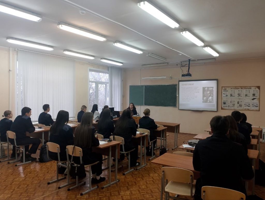 20 ноября преподаватель Гросс Е. Е. провела тематические занятия, посвящённые 80- летию начала Нюрнбергского трибунала над бывшими руководителями гитлеровской Германии. Он стал первым в новейшей истории примером международного правосудия. Принципы Нюрнбергского процесса стали фундаментом для создания современных механизмов международного правосудия и продолжают служить правовым ориентиром в борьбе с преступлениями против мира и человечности.