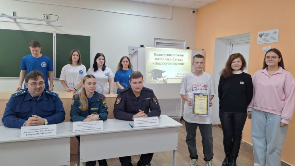 20 ноября 2025 года в рамках проведения Всероссийского дня правовой помощи детям, второго этапа комплексной межведомственной оперативно-профилактической акции «Чистое поколение — 2025» активисты волонтерского отряда «Территория энергии, здоровья и добра» студенты ГПОУ ТО » Тульский государственный технологический колледж» под руководством наставника Хомяковой И.В. при содействии прокуратуры Дубенского района Тульской области провели интеллект-баттл » Подросток и закон» для обучающихся 8, 9 и 11 классов МКОУ «Дубенская СОШ» МО Дубенский район.