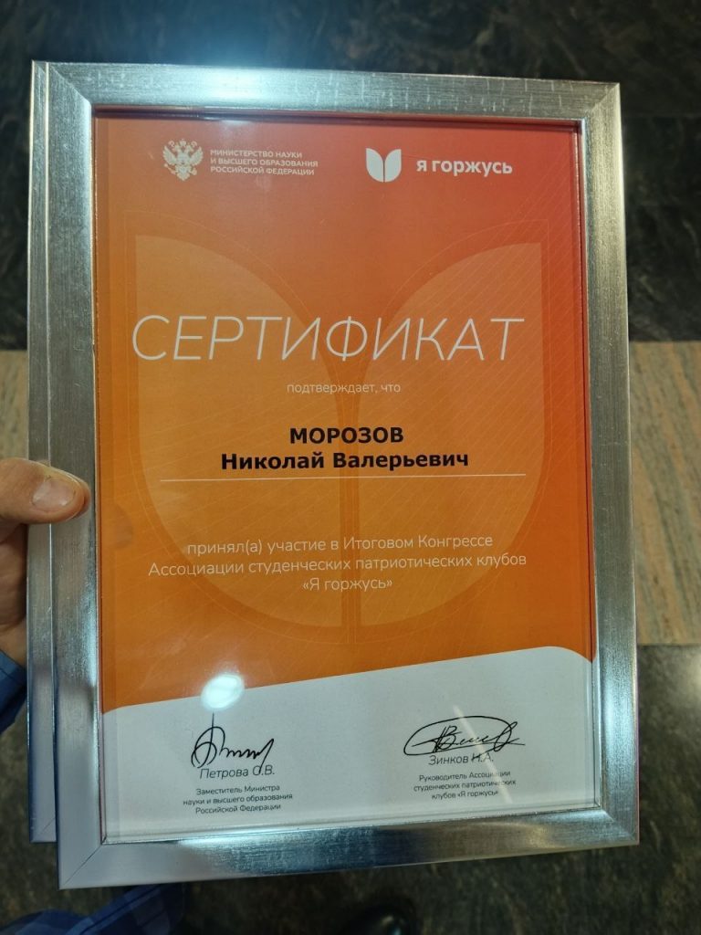 Студент ТГТК Морозов Николай представил колледж на итоговом конгрессе всероссийской Ассоциации «Я горжусь».