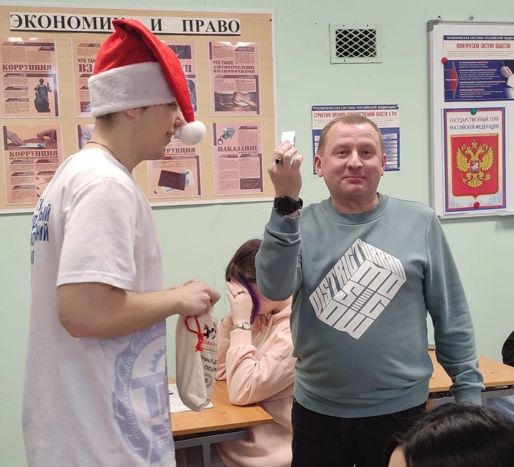 19 декабря 2025 года, в преддверии Нового года, активисты волонтерского отряда «Территория энергии, здоровья и добра» вместе с наставником устроили настоящий «Новогодний переполох» в стенах нашего колледжа: несмотря на приближающуюся сессию, в гости к студентам и преподавателям пришел настоящий Дед Мороз с помощниками, которые задавали вопросы, загадывали загадки, шутили и правильно ответившим вручали новогодние игрушки – шарики с добрыми предсказаниями!