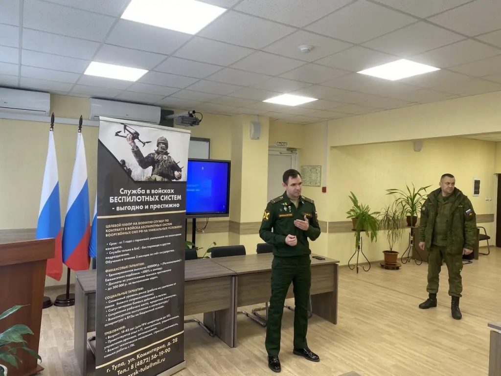 20 апреля на встречу к студентам приехали Титов А.О., офицер пункта отбора на военную службу по контракту и Иванов А.В., оператор отделения БПЛА. Во встрече принимали участие студенты выпускной группы БАС-31, обучающиеся по специальности 25.02.08 Эксплуатация беспилотных авиационных систем. Гости предоставили информацию о том, что ПРОИЗВОДИТСЯ ЦЕЛЕВОЙ НАБОР НА ВОЕННУЮ СЛУЖБУ ПО КОНТРАКТУ В ВОЙСКА БЕСПИЛОТНЫХ СИСТЕМ ВООРУЖЕННЫХ СИЛ РФ!•