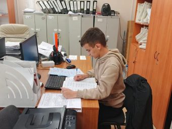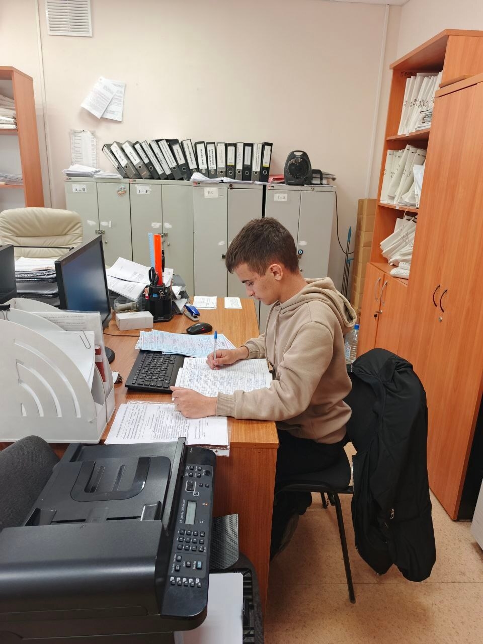Студент выпускной группы ПД-22 экономико-правового отделения Наумов Илья, проходит производственную практику по ПМ.02 Организационно..