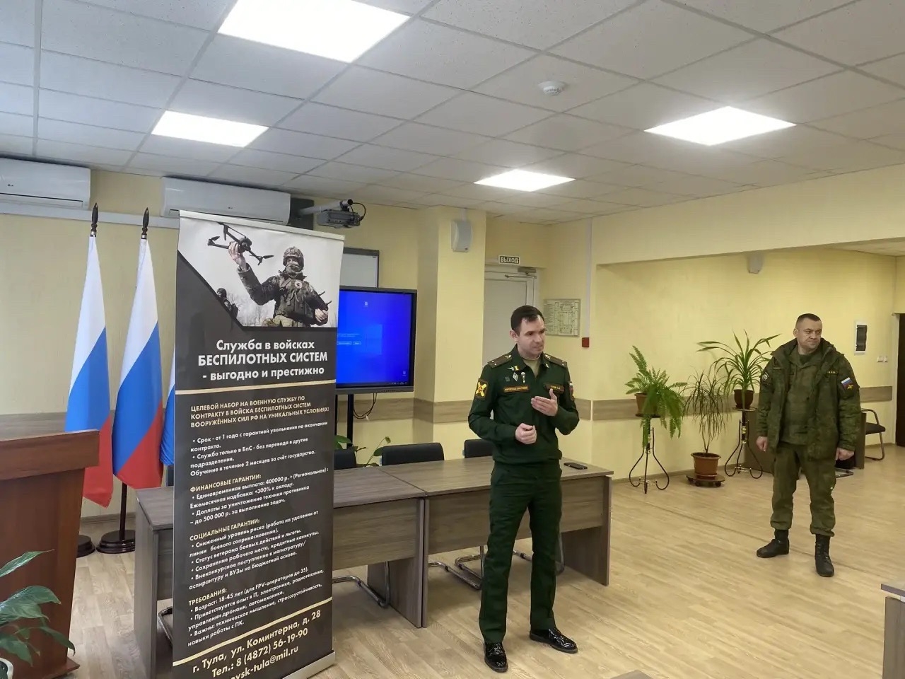20 апреля на встречу к студентам приехали Титов А.О., офицер пункта отбора на военную службу по контракту и Иванов А.В., оператор отделе..
